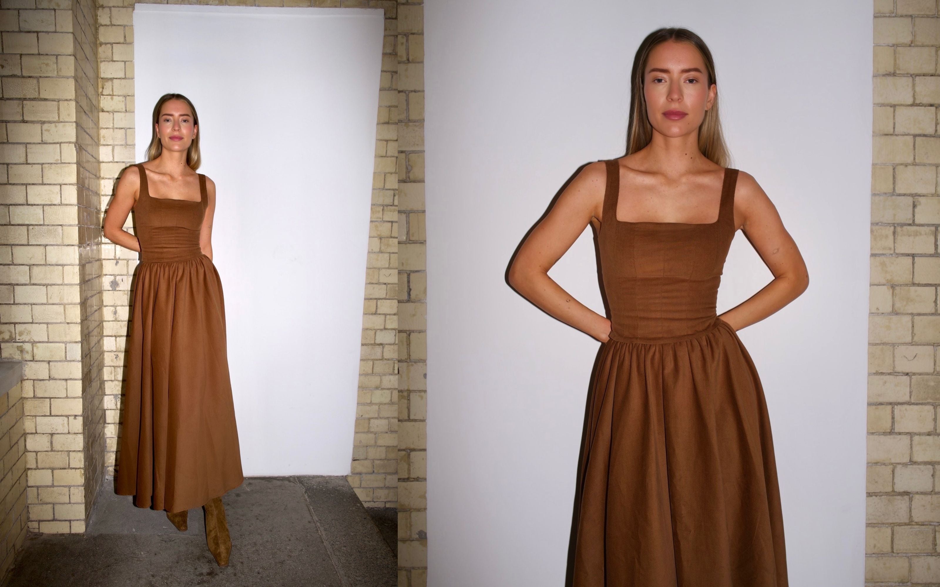 The Mocca Corduroy Set is designed for festive evenings, from intimate dinner parties to warm Christmas gatherings. The structured Gloria Corset Top and flowing Louma Midi Skirt come together in a rich mocca tone that feels seasonal without being seasonal. The soft corduroy texture adds depth, while the silhouette stays modern, refined and effortlessly flattering.